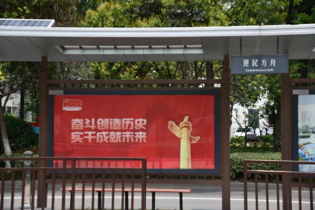 宿遷交通傳媒累計制作260余幅宣傳標語公益廣告,投放公交候車亭、停車場道閘、高鐵宿遷站等處,同時利用迎賓大道與北京路互通高立柱,全天循環(huán)播放慶祝中國共產(chǎn)黨成立100周年宣傳標語,扮靚城市容貌,點燃城市熱情。