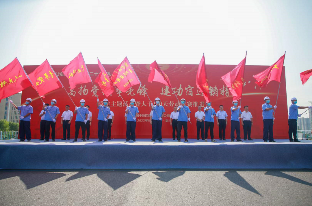在北京路快速化改造工程1標(biāo)段施工現(xiàn)場(chǎng)開展了“高揚(yáng)黨旗爭(zhēng)先鋒·建功宿遷鑄精品”黨建主題活動(dòng)暨大干100天勞動(dòng)競(jìng)賽推進(jìn)會(huì),為項(xiàng)目建設(shè)者鼓勁打氣,緊緊將建設(shè)者的心凝聚在一起。該工程主線高架橋施工基本完成,比計(jì)劃提前了20多天。