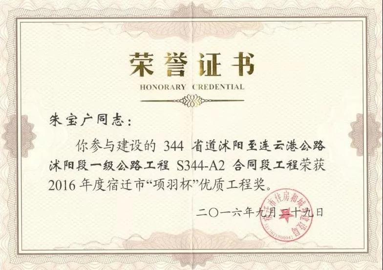 工作期間,多次獲得先進(jìn)個(gè)人與先進(jìn)工作者,集團(tuán)公司優(yōu)秀共產(chǎn)黨員,市交通運(yùn)輸行業(yè)“工地先鋒”等榮譽(yù)稱(chēng)號(hào);參建的344省道獲得宿遷市“項(xiàng)羽杯”優(yōu)質(zhì)工程獎(jiǎng),上海路工程被評(píng)為省級(jí)平安工地建設(shè)示范工地、市級(jí)示范工地。