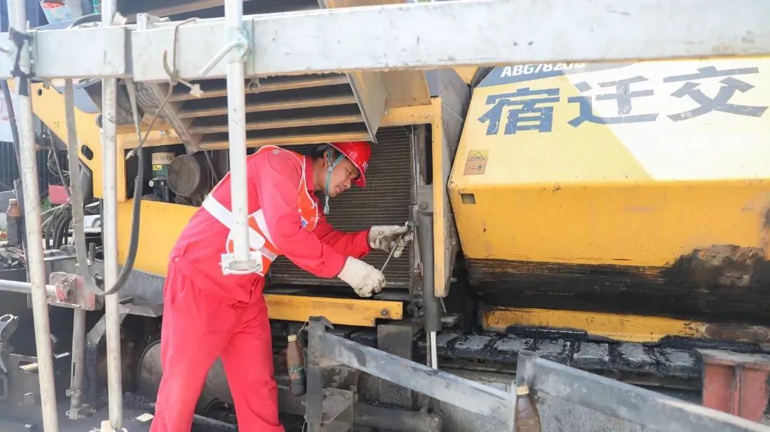 在S267省道泗陽(yáng)段項(xiàng)目現(xiàn)場(chǎng),瀝青攤鋪機(jī)找平油缸內(nèi)漏,機(jī)械操作手進(jìn)行緊急處理,更換密封件,確?,F(xiàn)場(chǎng)施工進(jìn)度按期完成。