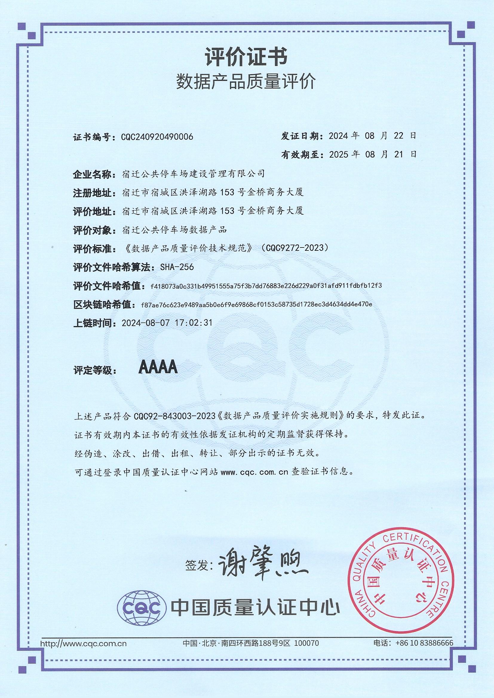 近日,宿遷交通集團(tuán)所屬企業(yè)宿遷市交通科技發(fā)展有限公司(原宿遷公共停車場(chǎng)建設(shè)管理有限公司,以下簡(jiǎn)稱“交通科技”)完成全市首個(gè)數(shù)據(jù)資產(chǎn)入表工作,數(shù)據(jù)資產(chǎn)入賬價(jià)值達(dá)400萬(wàn)元,評(píng)估價(jià)值逾2300萬(wàn)元。經(jīng)中國(guó)質(zhì)量認(rèn)證中心認(rèn)定,該數(shù)據(jù)產(chǎn)品質(zhì)量等級(jí)為4A級(jí),為全市首張4A級(jí)證書(shū),也是全省迄今為止第二張4A級(jí)證書(shū),標(biāo)志著宿遷數(shù)據(jù)知識(shí)產(chǎn)權(quán)登記、保護(hù)工作取得了新突破。