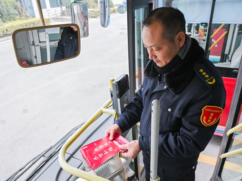 1月24日,宿遷市公交車駕駛員手拿免費(fèi)乘車投幣箱封口貼封閉投幣箱。為了滿足春節(jié)期間市民和游客的出行需求,營(yíng)造溫馨便捷氛圍,鼓勵(lì)和倡導(dǎo)市民綠色出行,宿遷市所有城市公交、城鄉(xiāng)公交、鎮(zhèn)村公交于1月25日至2月4日期間免費(fèi)乘坐。