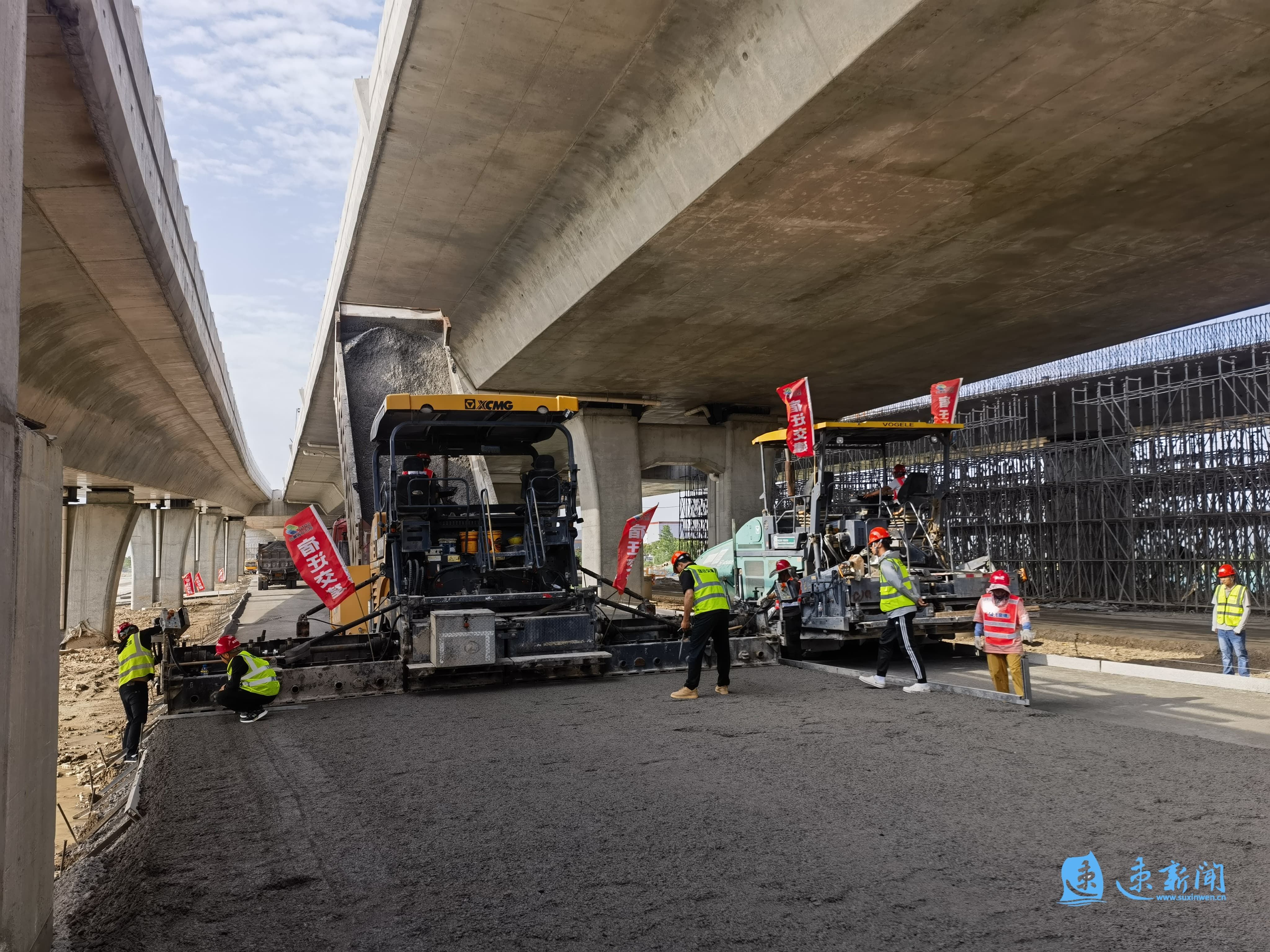 高空俯瞰建設(shè)中的酒都路快速化改造工程,這條南北走向的交通動(dòng)脈已全線貫通,宛如一條綿延的鋼鐵巨龍,氣勢(shì)恢宏。橋下施工區(qū)域,兩臺(tái)攤鋪機(jī)正勻速攤鋪水穩(wěn)層,壓路機(jī)緊隨其后來(lái)回碾壓,現(xiàn)場(chǎng)機(jī)械轟鳴,一派繁忙有序的施工景象。截止目前,完成投資21.09億元,占項(xiàng)目總投資的92%,預(yù)計(jì)年底建成通車。