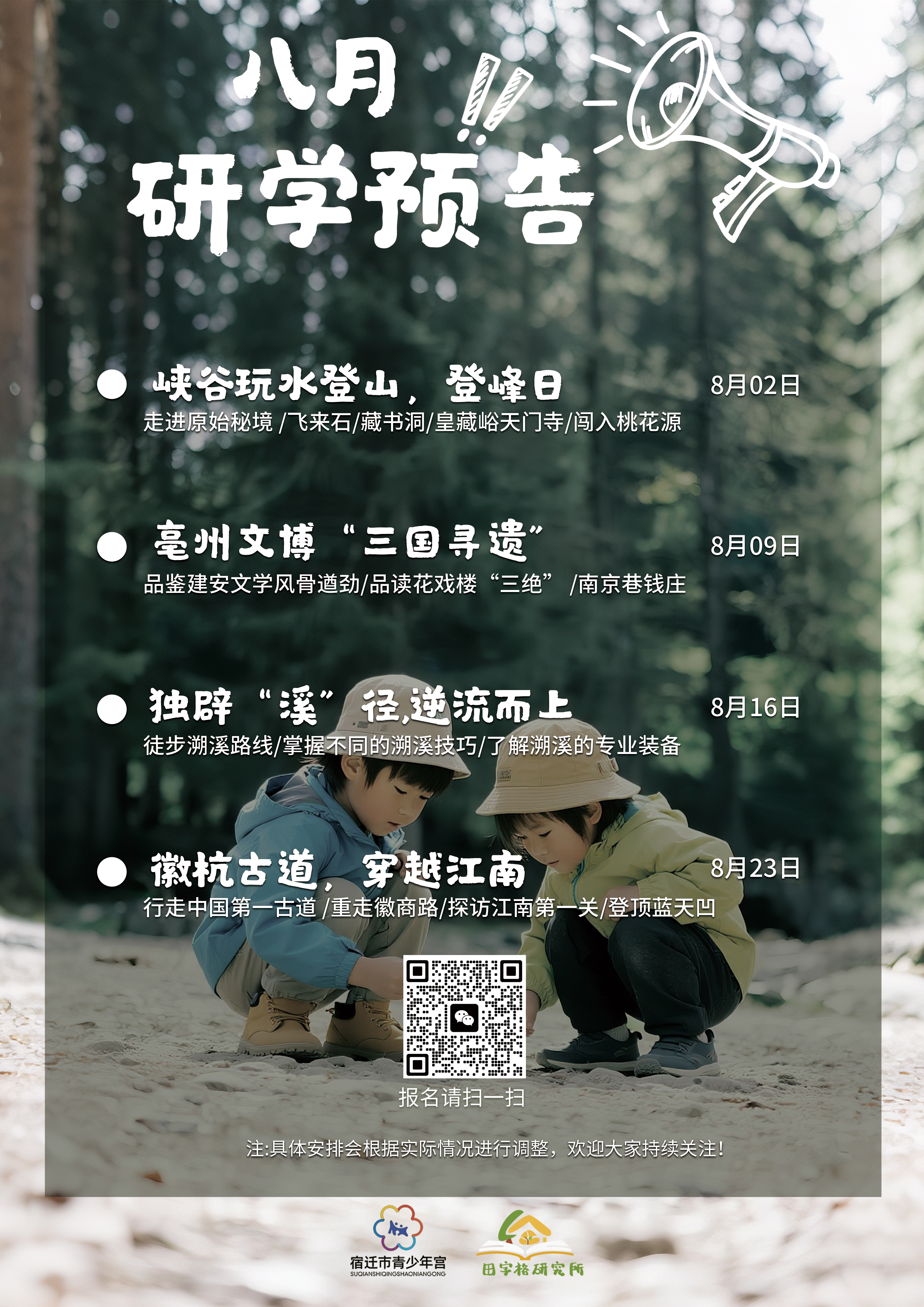 掃描下方二維碼,鎖定“峽谷登峰”名額!這個(gè)夏天,讓孩子在皇藏峪的山林里認(rèn)識(shí)自然,在溪水中釋放快樂,在登高中收獲勇氣。