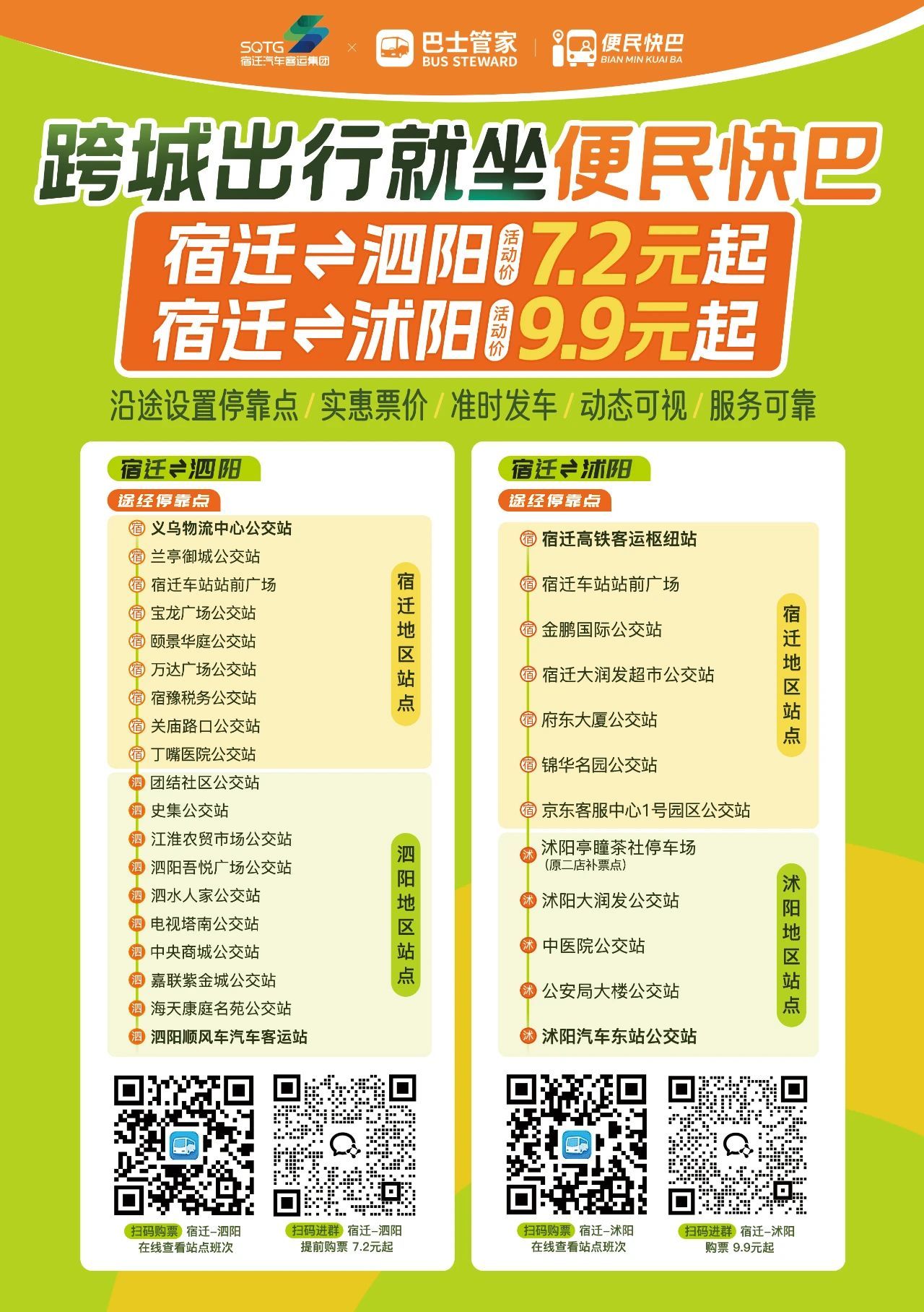 【宿汽集團(tuán)】沭陽(yáng)9.9元、泗陽(yáng)7.2元!宿遷“便民快巴”雙線已開通,運(yùn)營(yíng)時(shí)間、站點(diǎn)最全清單來(lái)了