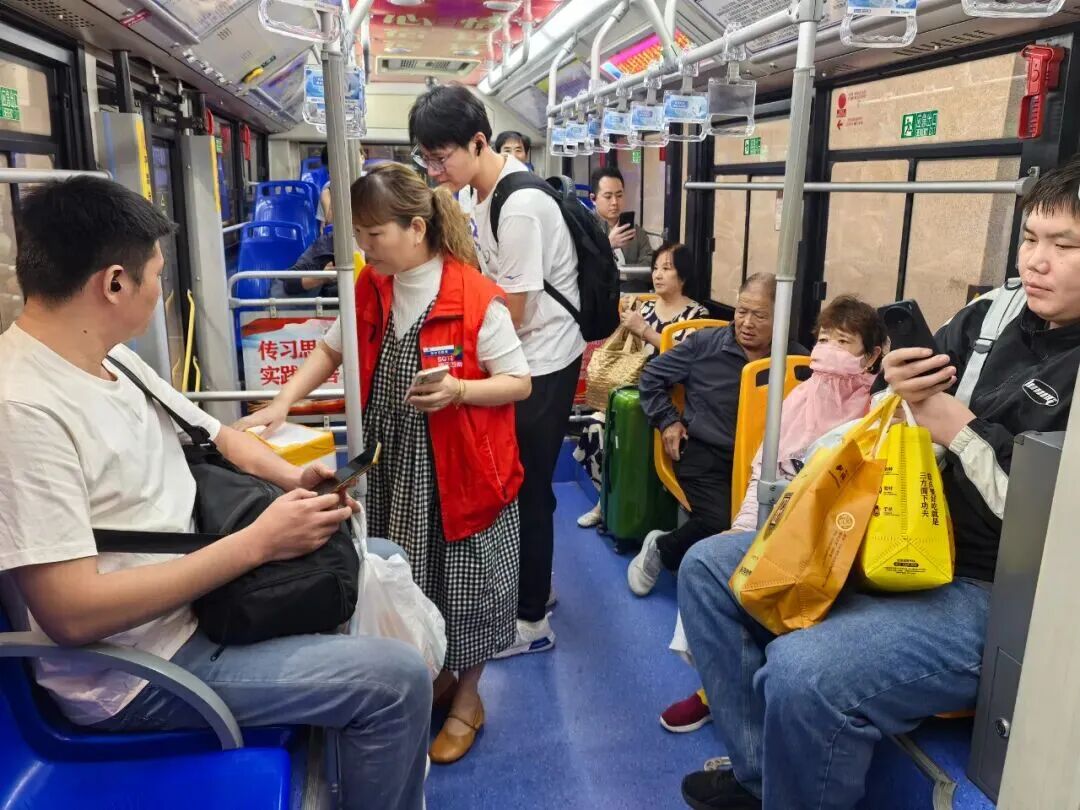 青年志愿者們也成為節(jié)日里的“溫暖使者”。他們身著紅色志愿服,活躍在各大公交站點。在高鐵公交樞紐站,志愿者們主動幫攜帶大件行李的乘客搬運行李,引導(dǎo)他們快速找到乘車線路。