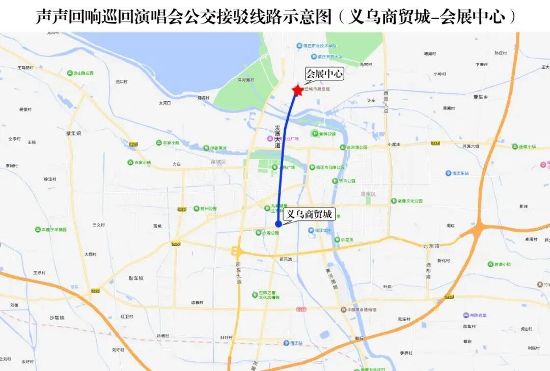 具體線路:江山大道——項王路——黃河路——三臺山大道——奧體路——會展中心(奧萊廣場)