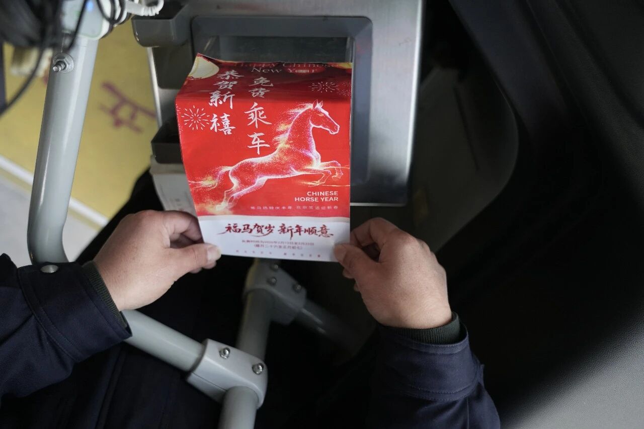 2月13日上午7時(shí),公交公司駕駛員手拿免費(fèi)乘車投幣箱封口貼封閉投幣箱。據(jù)悉,2026年春節(jié)期間,公交公司繼續(xù)實(shí)施免費(fèi)乘坐公交優(yōu)惠政策,自2月13日(農(nóng)歷臘月二十六)至2月23日(農(nóng)歷正月初七),共11天,乘客無(wú)需刷卡、掃碼或投幣支付,即可乘車。