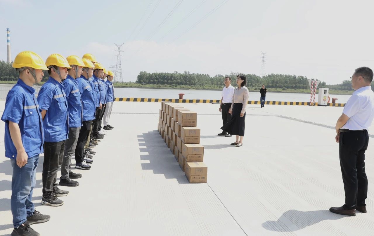 運河宿遷港三期碼頭現(xiàn)場也是一派繁忙景象。慰問組一行再三叮囑一線操作人員時刻注意作業(yè)安全,嚴格遵守操作規(guī)程,做好防暑降溫措施,合理安排作息時間,為集團高質(zhì)量發(fā)展貢獻港口力量。