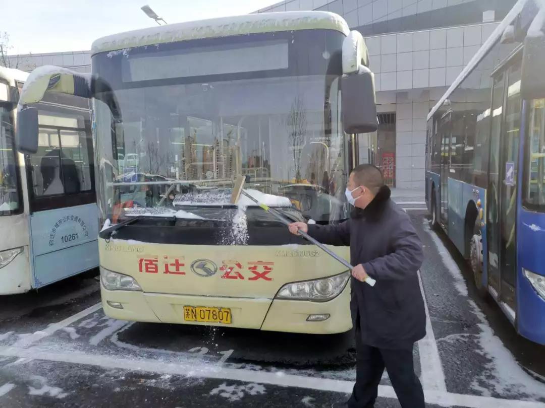 為有效應(yīng)對(duì)惡劣天氣,確保公交車正常運(yùn)營(yíng),公交公司根據(jù)氣象部門預(yù)報(bào)提前準(zhǔn)備,在微信工作群里及時(shí)發(fā)布雪情信息,要求各站嚴(yán)格防范。