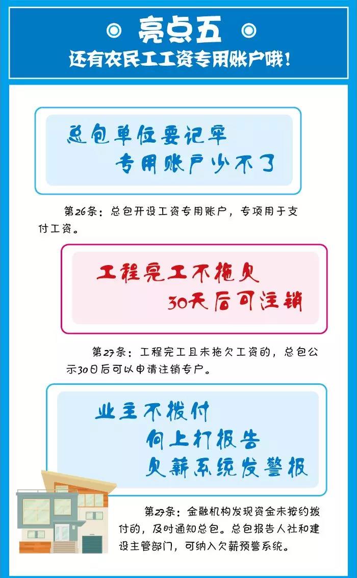 上述條款明確來總包設(shè)立農(nóng)民工工資專用賬戶的義務(wù),專門用于支付農(nóng)民工工資,建設(shè)單位應(yīng)按照合同約定及時向該賬戶內(nèi)撥付工資,如建設(shè)單位未及時撥付,總包單位可向人社和建設(shè)主管部門進(jìn)行匯報,將建設(shè)單位納入欠薪預(yù)警系統(tǒng)。