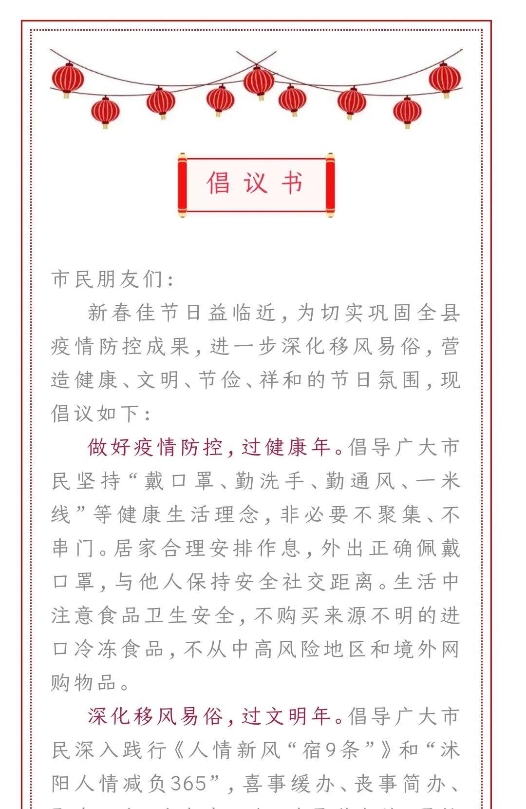 沭陽發(fā)布安全文明過大年倡議書,倡導(dǎo)“婚事新辦,喪事簡辦,小事不辦”;