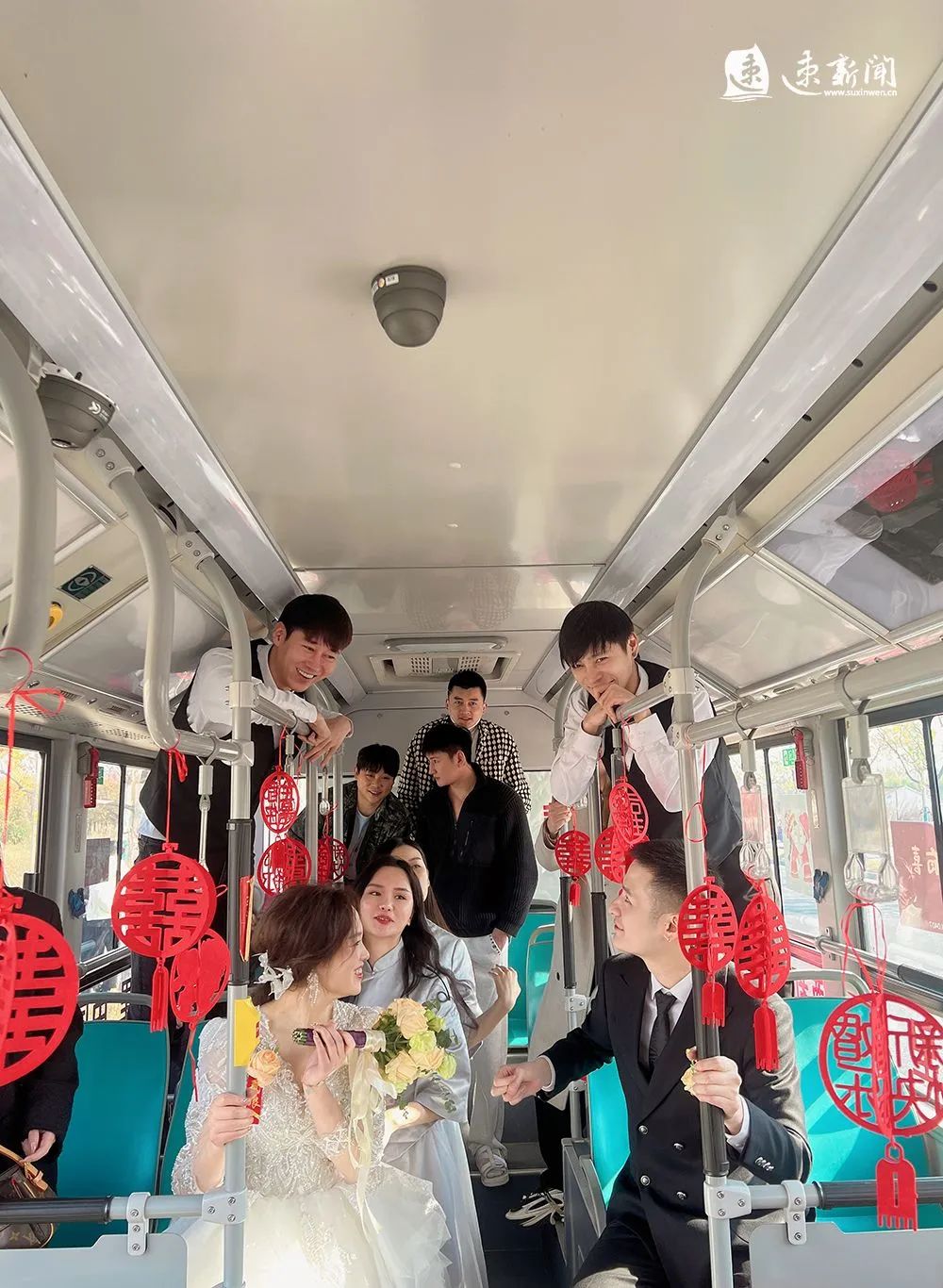 “現(xiàn)在年輕人的婚禮形式越來越多樣了,我們?cè)诓邉澔槎Y時(shí)對(duì)‘公交婚車’特別感興趣,沒想到公交公司真的可以幫我們實(shí)現(xiàn)!”新娘何澄澄來自安徽,新郎唐魁則是宿遷人,二人一直在上海工作,當(dāng)日,他們?cè)谒捱w舉辦了婚禮。