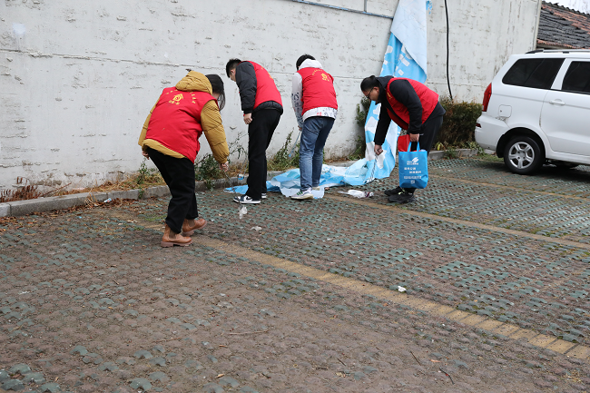 9時50分,志愿者們迅速穿上志愿者馬甲,領(lǐng)取勞動工具。帶隊人將志愿者們分成二組,在不同區(qū)域打掃衛(wèi)生,本次打掃的重點是社區(qū)樓道與路面。雖然過程很冷、很辛苦,但志愿者們依然堅持,經(jīng)過志愿者們的清掃,果園社區(qū)的整體面貌煥然一新。他們用行動和微笑詮釋了“愛護(hù)環(huán)境,人人有責(zé)”的活動意義,得到了果園社區(qū)群眾的充分肯定。