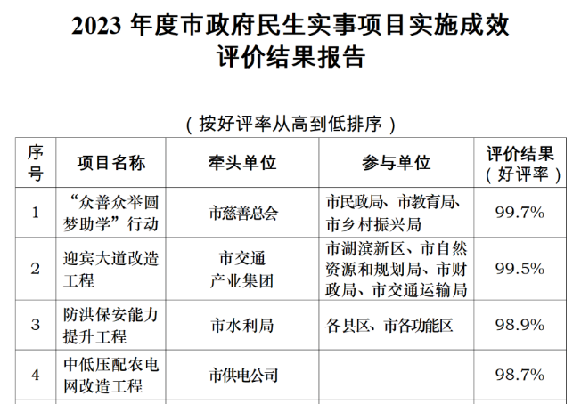2023年度市政府100個(gè)民生實(shí)事項(xiàng)目