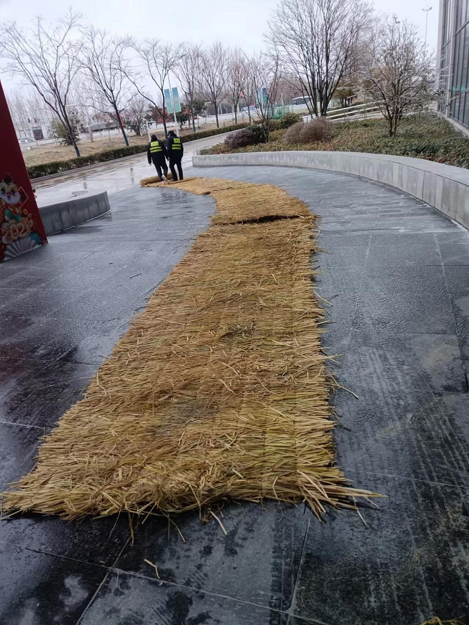 通湖物流園提前儲備防滑材料、融雪劑等應(yīng)急物資,在園區(qū)入口、坡道等重點(diǎn)路段鋪設(shè)防滑草墊,防止出現(xiàn)事故;做好園區(qū)內(nèi)物流企業(yè)安全宣教工作,督促企業(yè)提醒貨運(yùn)司機(jī)注意應(yīng)對嚴(yán)寒冰凍天氣,確保行車安全。