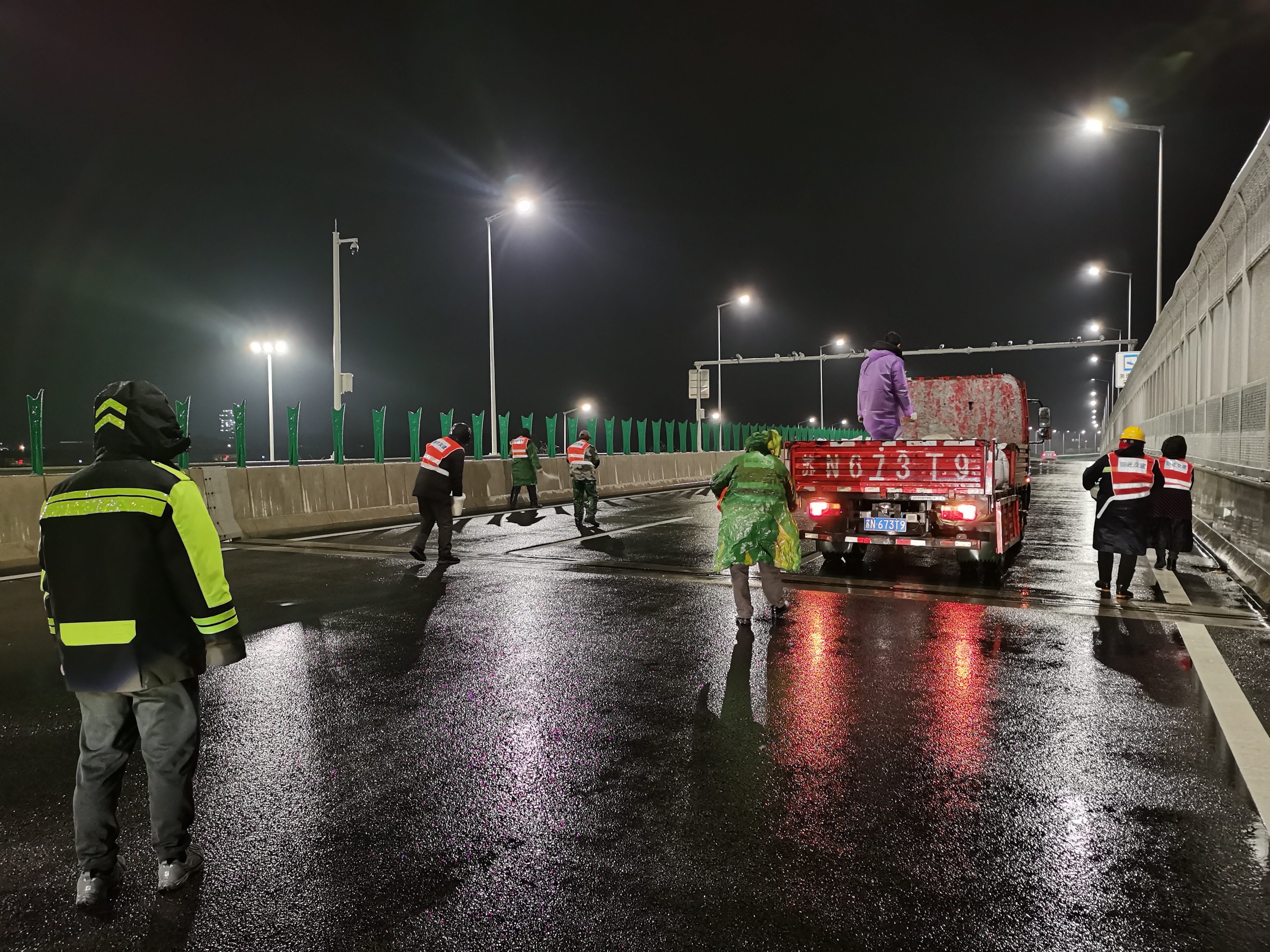 高鐵公司召開工作布置會議,全面進(jìn)入應(yīng)急響應(yīng)和保障狀態(tài),對迎賓大道二期、北京路、上海路、洋河大道等管養(yǎng)路段24小時(shí)巡查和預(yù)防、養(yǎng)護(hù)處理,所有機(jī)械設(shè)備、人員全面進(jìn)入崗位。20日凌晨出動巡查車、滾雪車、鏟雪車、融雪劑撒布機(jī)等機(jī)械設(shè)備54臺、應(yīng)急保障人員195名,采取機(jī)械為主、人工配合方式,對管養(yǎng)道路進(jìn)行融雪劑撒布,累計(jì)撒融雪劑150余噸。