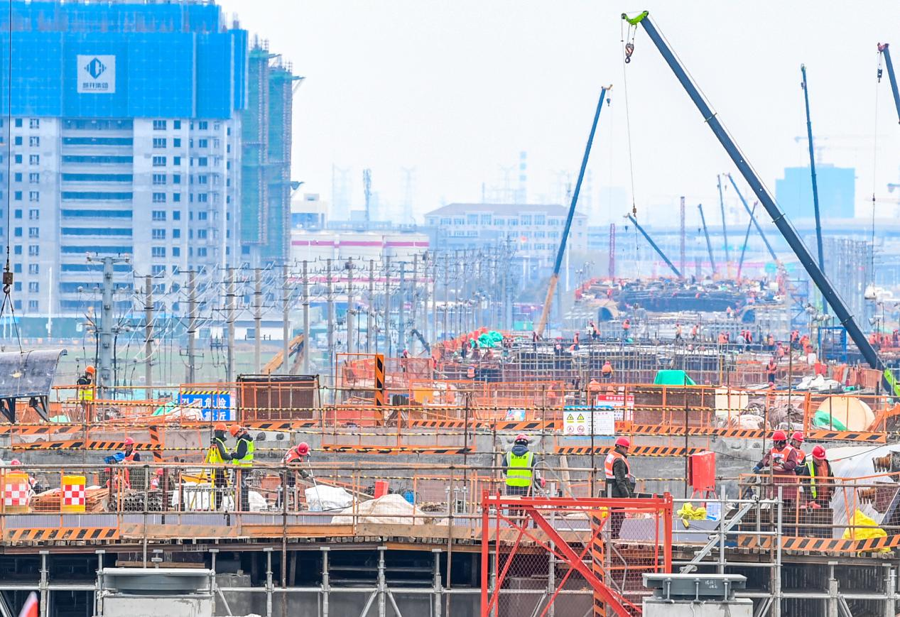 3月13日,在宿遷市酒都路(原張家港大道一期)快速化改造工程現(xiàn)場(chǎng),塔吊林立、機(jī)械轟鳴,工人正在緊張施工。架設(shè)腳手架、墩柱澆筑、鋼筋綁扎、混凝土澆筑作業(yè)交替進(jìn)行,到處是一派熱火朝天的景象。切割、焊接、敲打聲此起彼伏,吊車、塔吊、挖掘機(jī)、裝載機(jī)馬力全開,正在有序作業(yè)。踏著春天的腳步,來自各地的工人在宿遷奏響“春之曲”,項(xiàng)目踏春提速,步伐奮進(jìn)激昂,生動(dòng)詮釋了如何落實(shí)好高質(zhì)量發(fā)展、構(gòu)建好新的發(fā)展格局這一時(shí)代答卷。