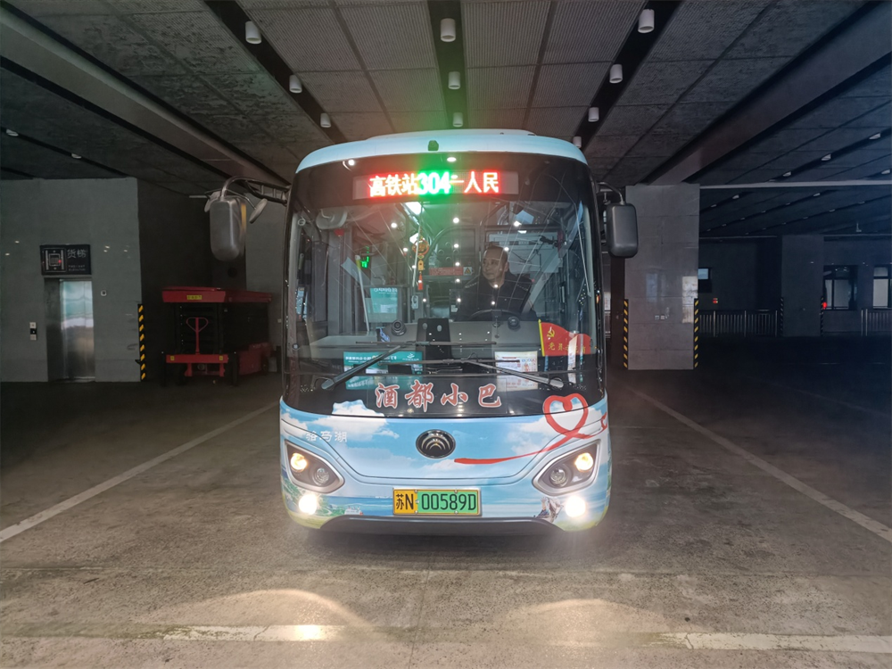 在仔細(xì)確認(rèn)了車輛的安全性能后,又細(xì)心地擦干凈車窗上的水霧,早上6:00,葉敬濤穩(wěn)穩(wěn)將車停在高鐵宿遷站公交發(fā)車區(qū),等待著第一批乘客。