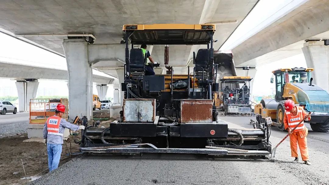 現(xiàn)場機(jī)械轟鳴、人員繁忙。施工人員頂著高溫,嚴(yán)格按照路面施工規(guī)范和設(shè)計(jì)要求,嫻熟開展水穩(wěn)層攤鋪?zhàn)鳂I(yè):卸料、攤鋪、修邊、碾壓、收面,攤鋪機(jī)與壓路機(jī)協(xié)同配合,各道工序銜接緊密、井然有序。