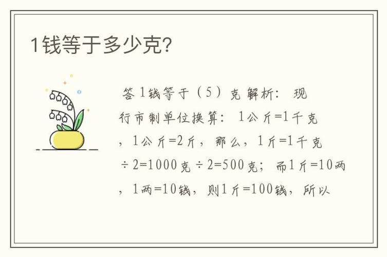 在中國傳統(tǒng)文化中,計量單位有著悠久的歷史和豐富的內(nèi)涵。其中,錢作為一種古老的貨幣單位,至今仍在一些場合被使用。然而,隨著現(xiàn)代科技的發(fā)展,人們對于計量單位的精確度要求越來越高,因此,了解八錢等于多少克這個主題顯得尤為重要。